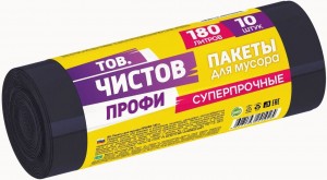 Мешки для мусора 180л/10шт,45мкм,ПВД,черные,рулон,ПРОФИ/41025 Тов.Чистов
