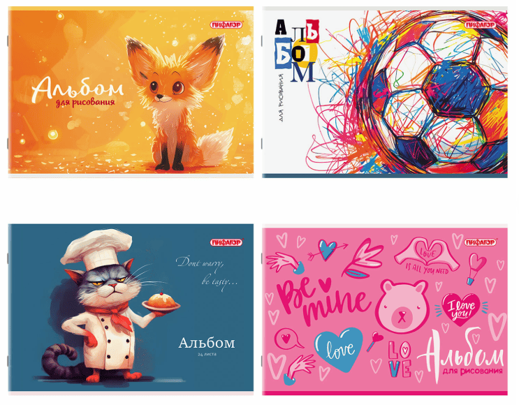 Альбом д/рисования 24л., А4, скоба, обложка офсет, ПИФАГОР, 203х288мм, МИКС-1, 107105