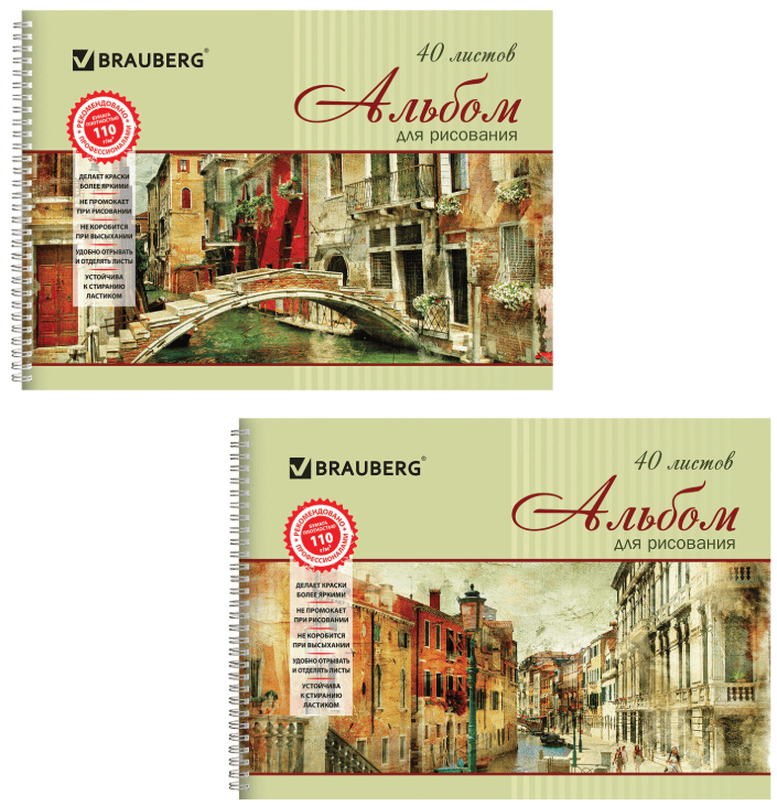 Альбом д/рисования 40л. А4, гребень,обложка картон, BRAUBERG, 195х285мм, Город мечты (2вида), 103731