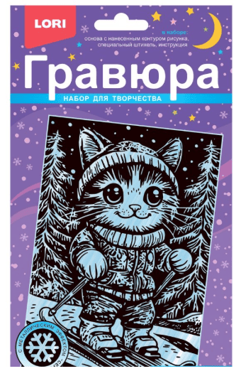 Гравюра малая с эффектом серебра новогодняя “Пушистый лыжник” Гр-931