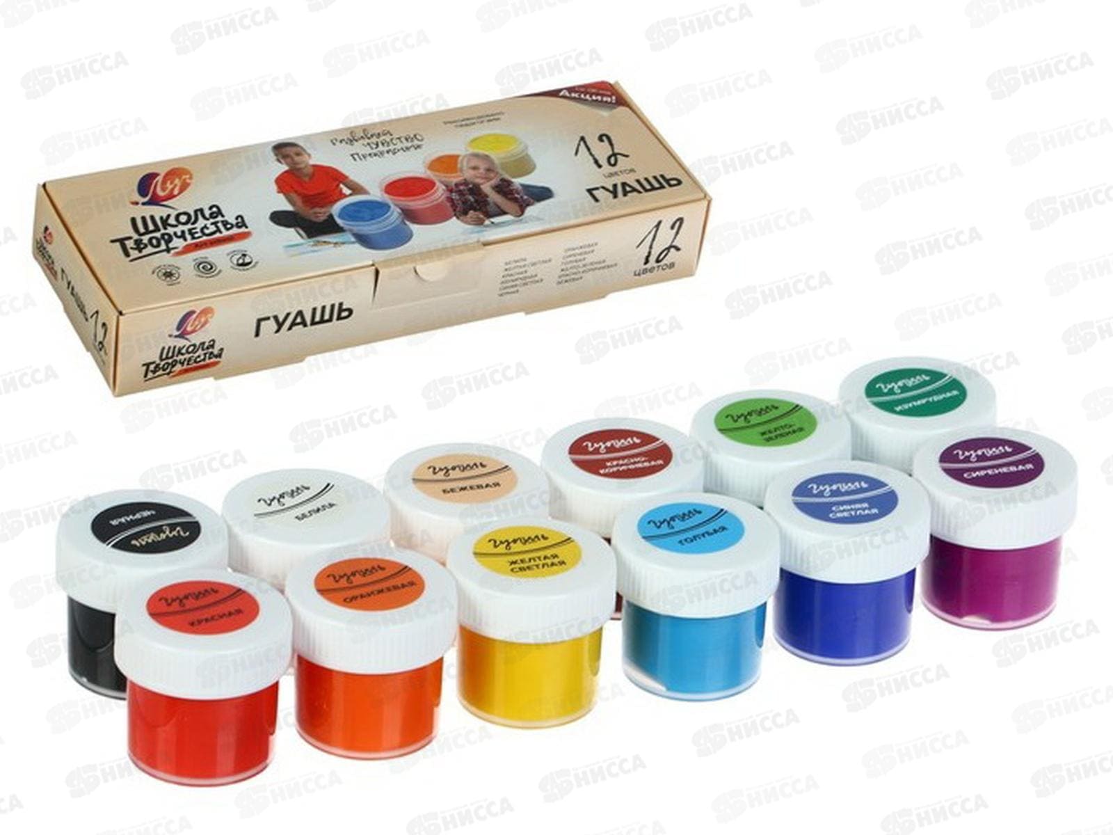 Гуашь 12 цветов ЛУЧ “Школа творчества”, 20 мл, без кисти, картонная упаковка, 29С 1753-08