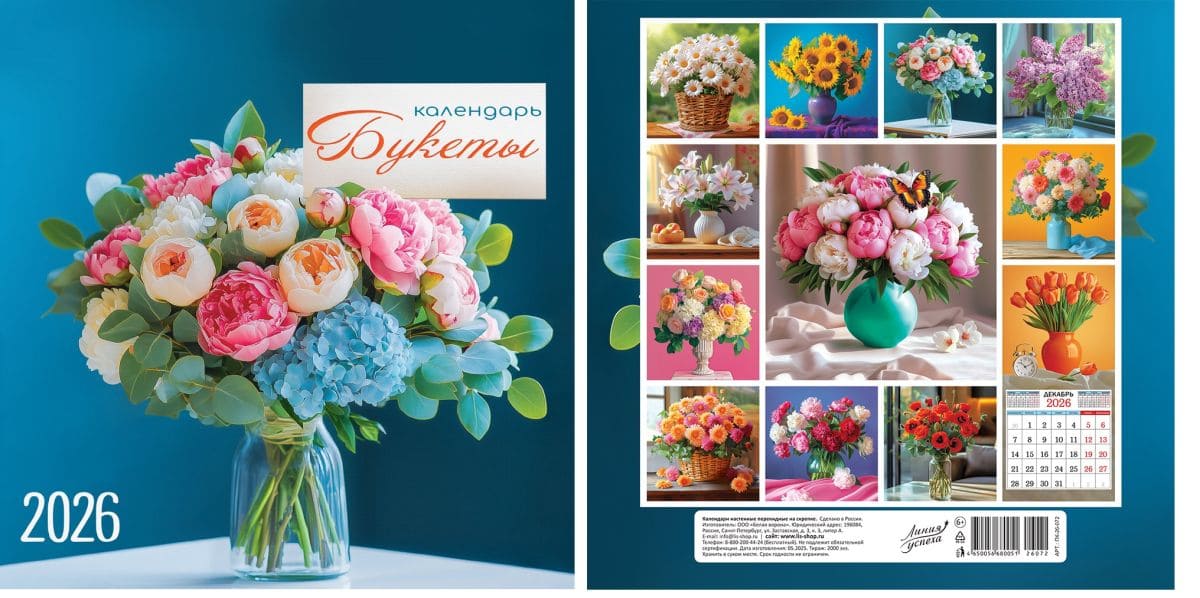 Календарь 2026 настенн. на скр. 12л. 230*235 ПК-26-072 Букеты