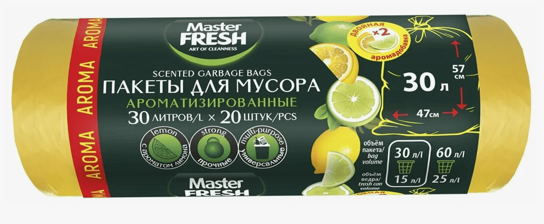 Мешки для мусора Master FRESH 30л. AROMA LEMON желтые 20шт.