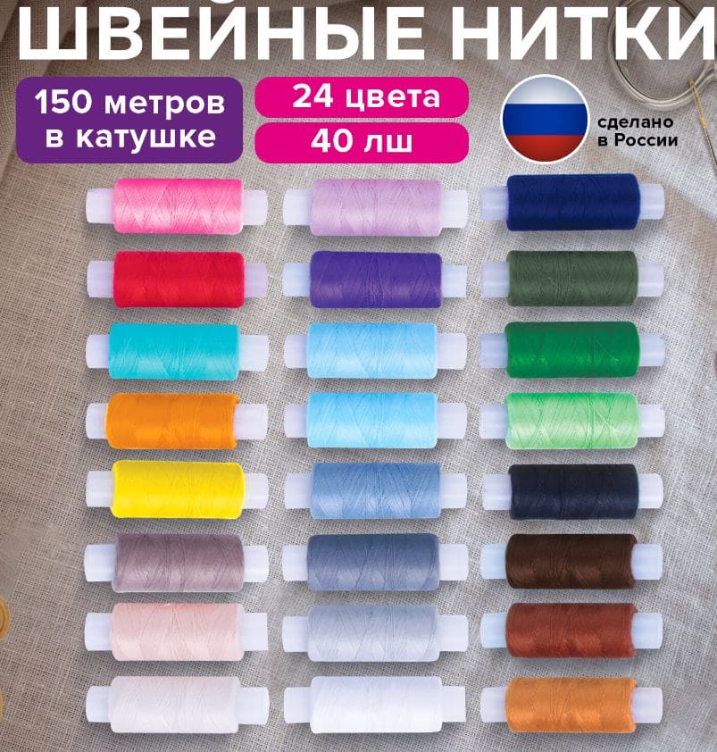 Набор швейных ниток, 24 цвета по 150 м, в тубе, 40 ЛШ, ОСТРОВ СОКРОВИЩ, 662788