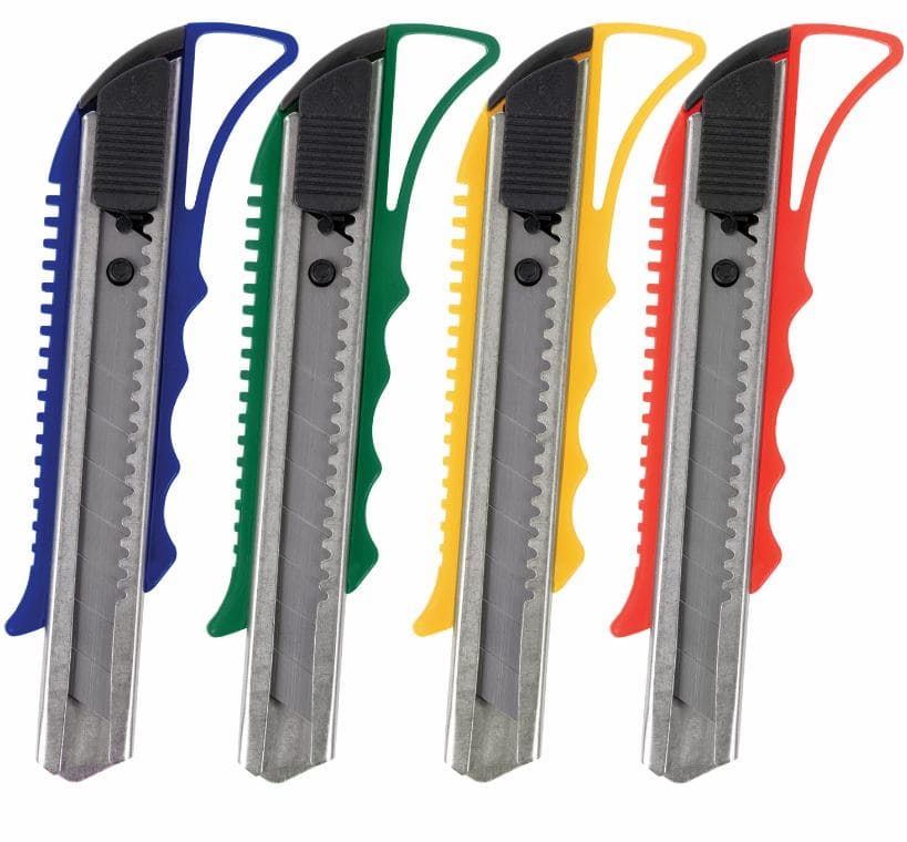 Нож канцелярский 18 мм STAFF Profit, усиленный, металл. направляющие, автофиксатор, ассорти, 237083