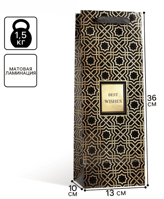 Пакет ламинированный под бутылку «Best wishes», 13 x 36 x 10 см 5035707