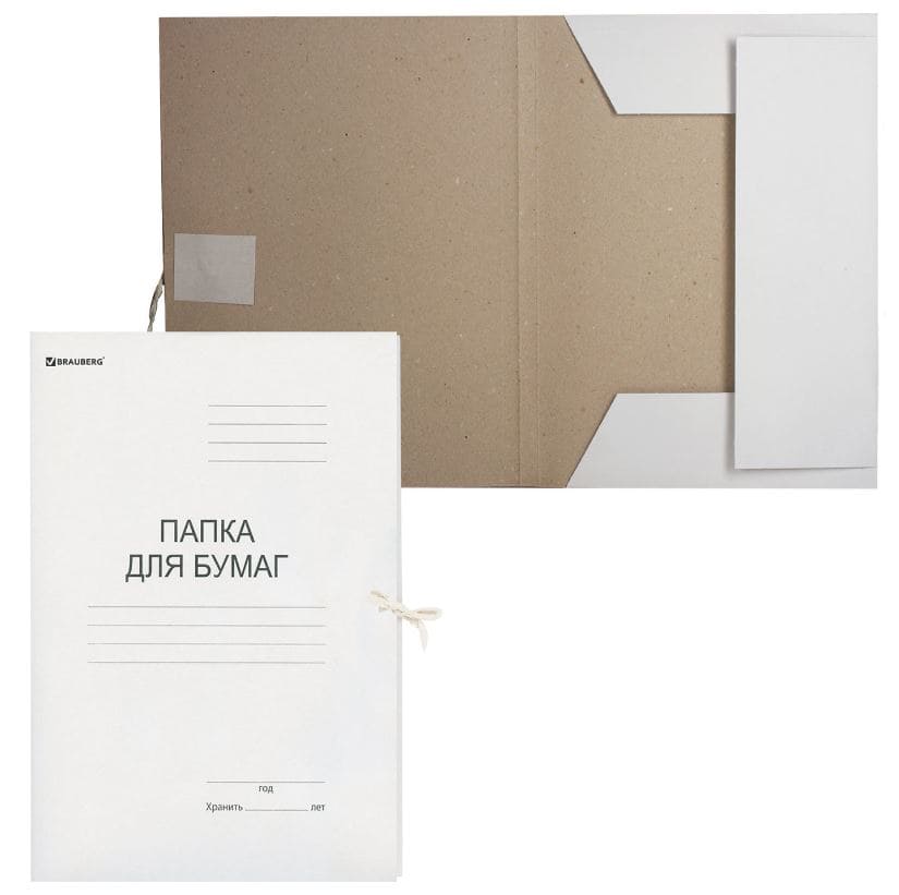 Папка для бумаг с завязками картонная BRAUBERG, гарантированная плотность 280 г/м2, до 200л, 122292