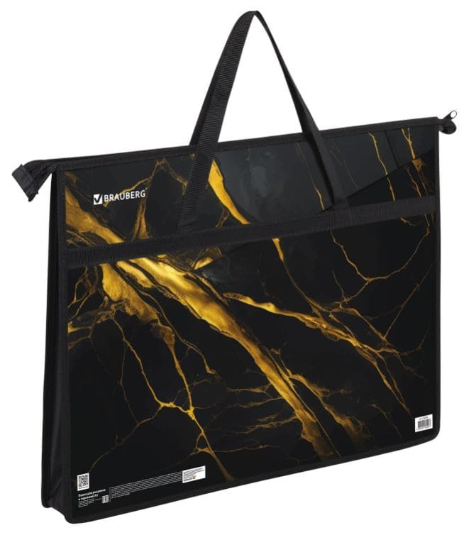 Папка для рисунков и чертежей с ручками BRAUBERG А3,пластик,молния сверху, Black&gold marble, 272232
