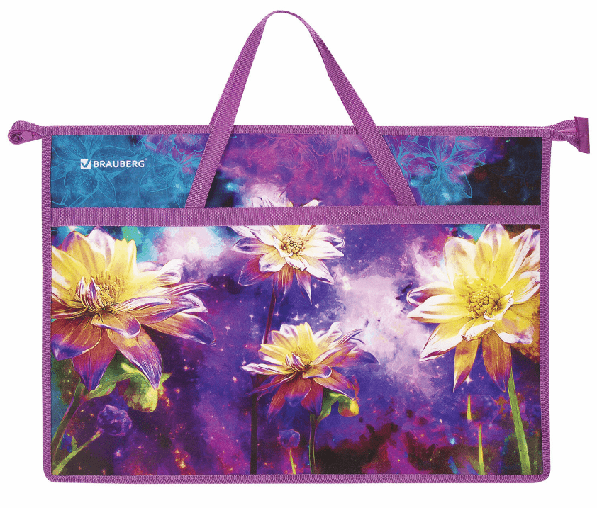 Папка для рисунков и чертежей с ручками BRAUBERG А3, пластик, молния сверху, Flowers, 270146