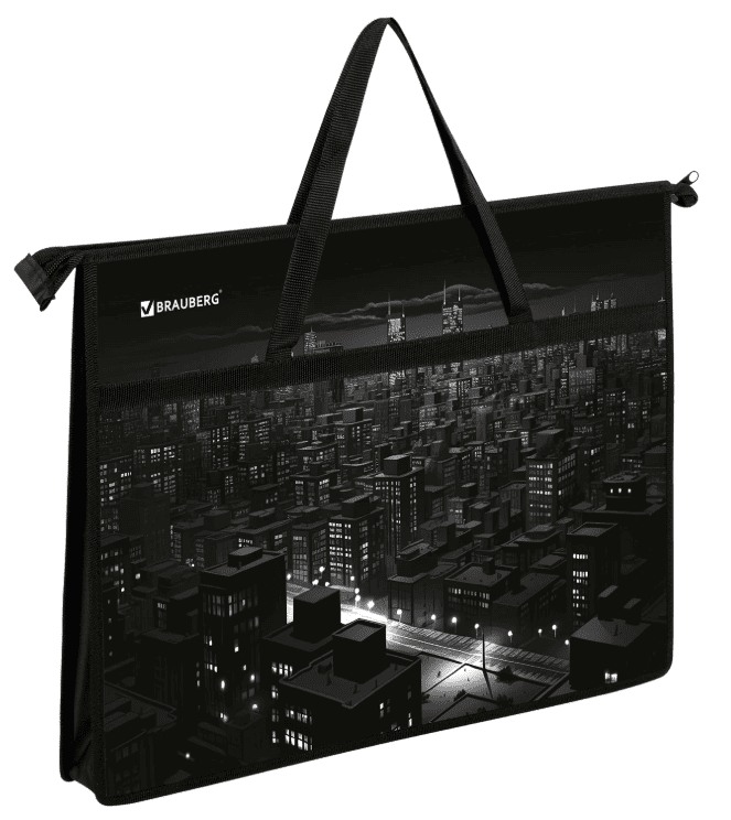 Папка для рисунков и чертежей с ручками BRAUBERG А3, пластик, молния сверху, Night city, 273410
