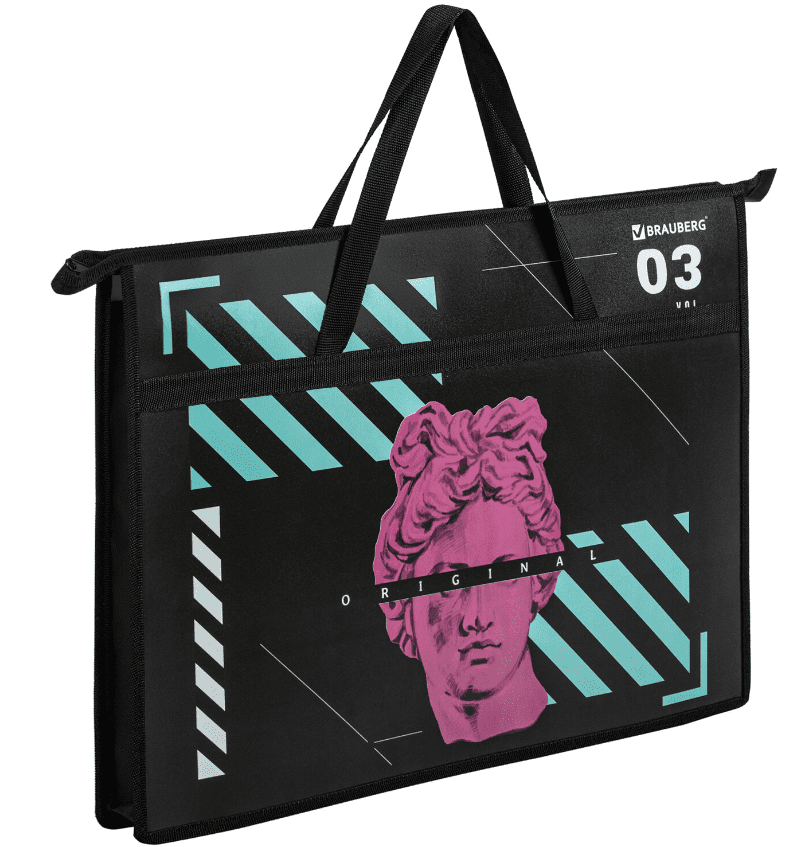 Папка для рисунков и чертежей с ручками BRAUBERG А3, пластик, молния сверху, The Original, 271436