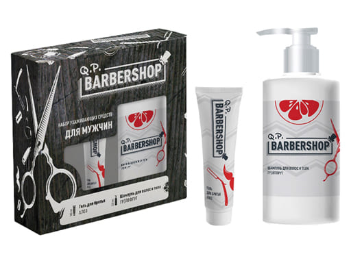 Q.P. BARBERSHOP ПН №1300 Алоэ и Грейпфрут (Шампунь Грейпфрут 320мл+Гель для бритья Алоэ 100мл), 8шт