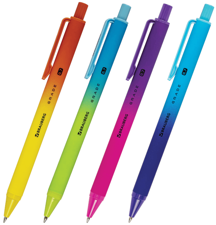 Ручка шариковая автоматическая BRAUBERG GRADE, корпус soft-touch, СИНЯЯ, 0,7мм, линия 0,35мм, 144205