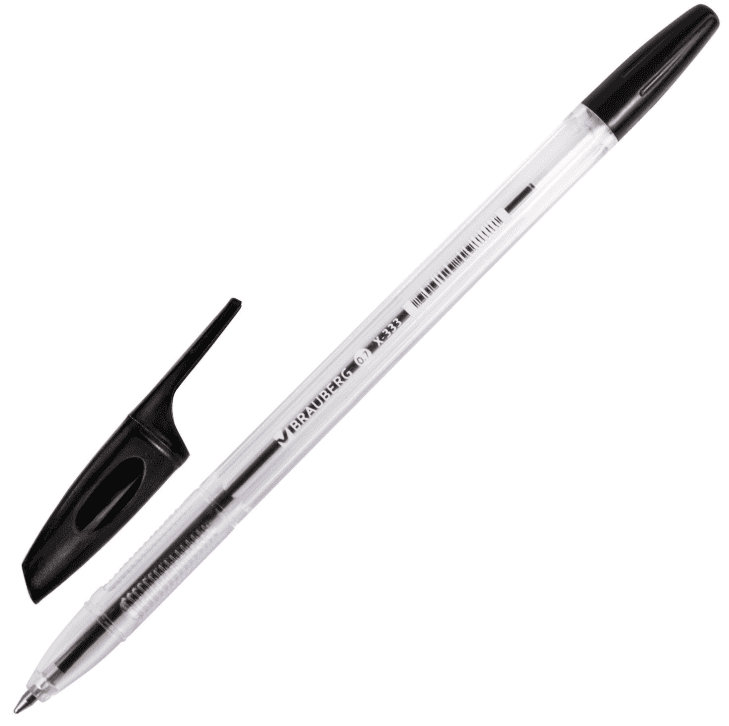 Ручка шариковая черная BRAUBERG “X-333”, корпус прозрачный, узел 0,7 мм, лин. письма 0,35 мм,142406
