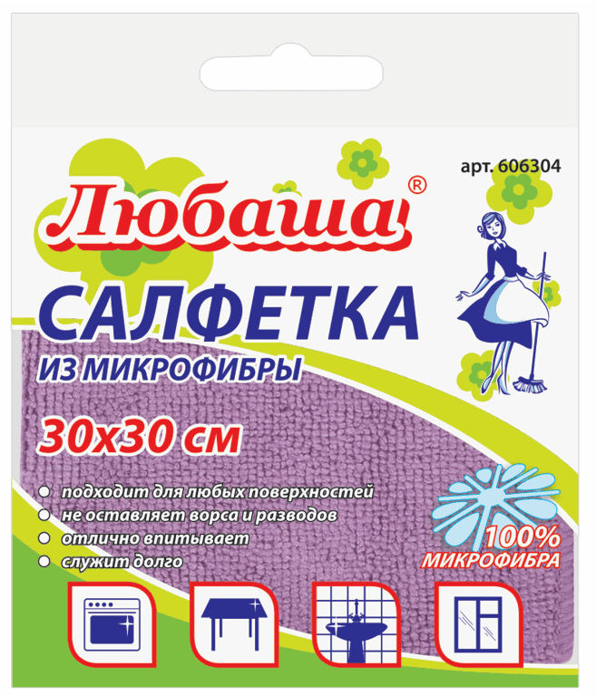 Салфетка из МИКРОФИБРЫ универсальная 30х30см фиолетовая 180 г/м2, ЛЮБАША ЭКОНОМ, 606304