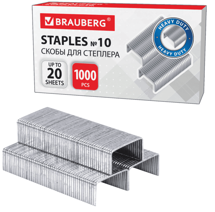 Скобы для степлера №10, 1000 штук, BRAUBERG, до 20 листов, 220949