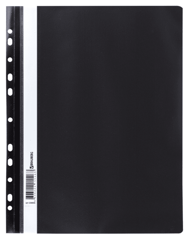 Скоросшиватель пластиковый с перфорацией BRAUBERG, А4, 140/180 мкм, черный, 226586