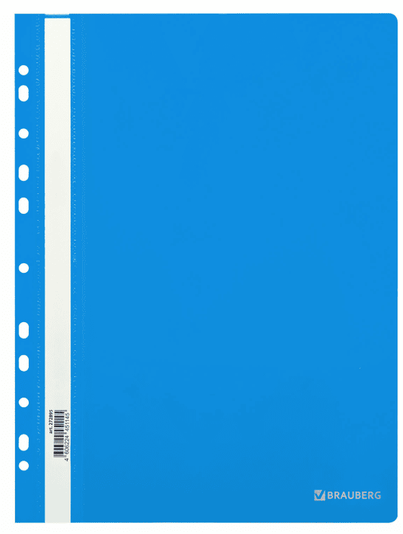 Скоросшиватель пластиковый с перфорацией BRAUBERG EXTRA, А4, 140/180 мкм, синий, 272895