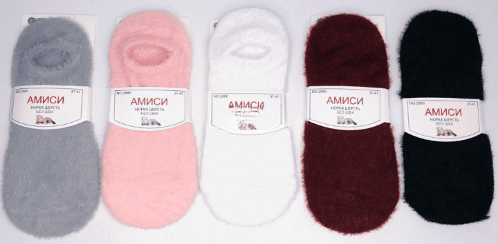 Следки женские из шерсти норки не махровые, ассорти, АМИСИ 2880-1