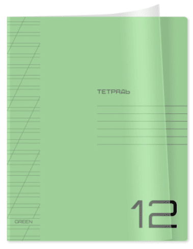 Тетрадь 12 косая линия BG «UniTone. Green» пластиковая прозрачная обложка 12443