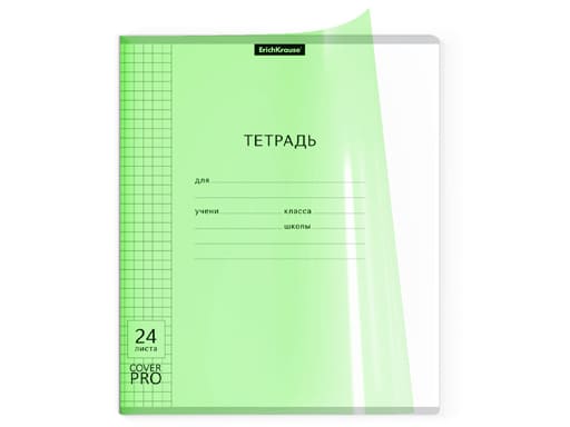 Тетрадь 24л. КЛ. с пластиковой обложкой на скобе ErichKrause Классика CoverPrо Neon, зелен. 56380
