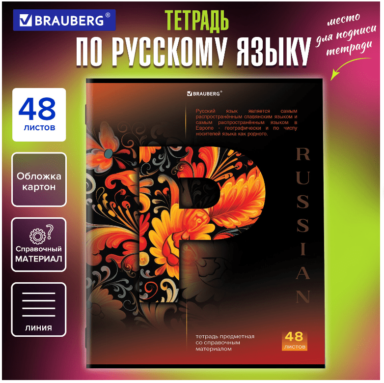 Тетрадь предметная Русский язык КЛАССИКА SCIENCE 48л, обложка картон, линия,подсказ,BRAUBERG,404815