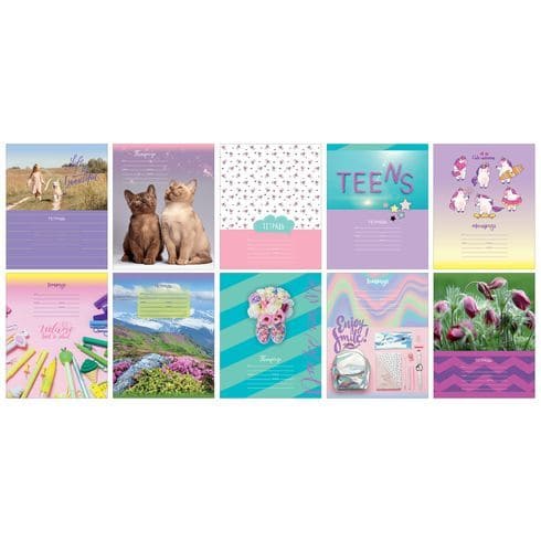 Тетрадь школьная “MIX-10. Девочки”, А5, 12 листов, линия BG, цвет в ассортименте
