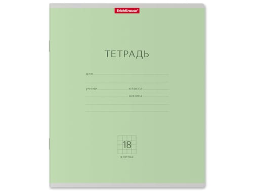 Тетрадь школьная ученическая ErichKrause® Классика зеленая, 18 листов, клетка 35278