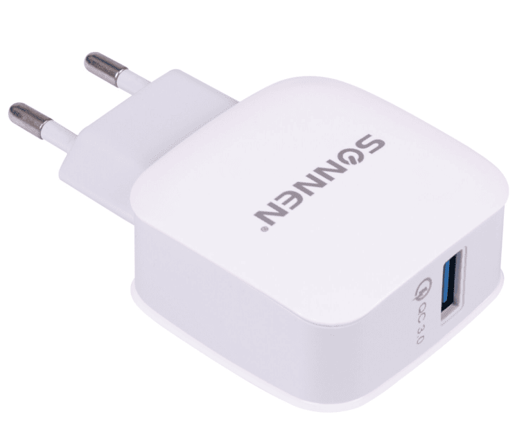 Зарядное устройство быстрое сетевое (220В) SONNEN, USB QC 3.0 18Вт, 3А, белое, 455506